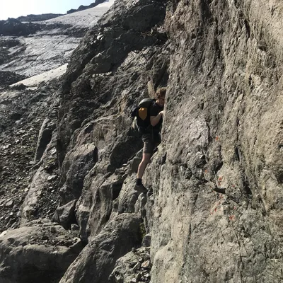 Am darauf folgenden Tag ging es dann auf knapp 10 km und 1600 hm zur Darmstädter Hütte. Bis zum 2978 m hohen Scheibler war der Weg relativ entspannt. Danach entschieden wir uns allerdings über diverse Geröllfelder und später den Faselfadferne einen kleinen Umweg zum auf etwa 2650m liegenden Bergsee zu machen, was die ein oder andere Kletterpartie und Rutscheinlage auf dem Ferne bedeutete. An der Darmstädter Hütte angekommen hatten wir, nach einer kurzen Stärkung, noch Zeit und so machten wir noch eine Nachmittagstour in Richtung der 3039 m hohen Saumspitze, die wir allerdings nicht mehr erreichten, da es dann doch zu spät wurde.